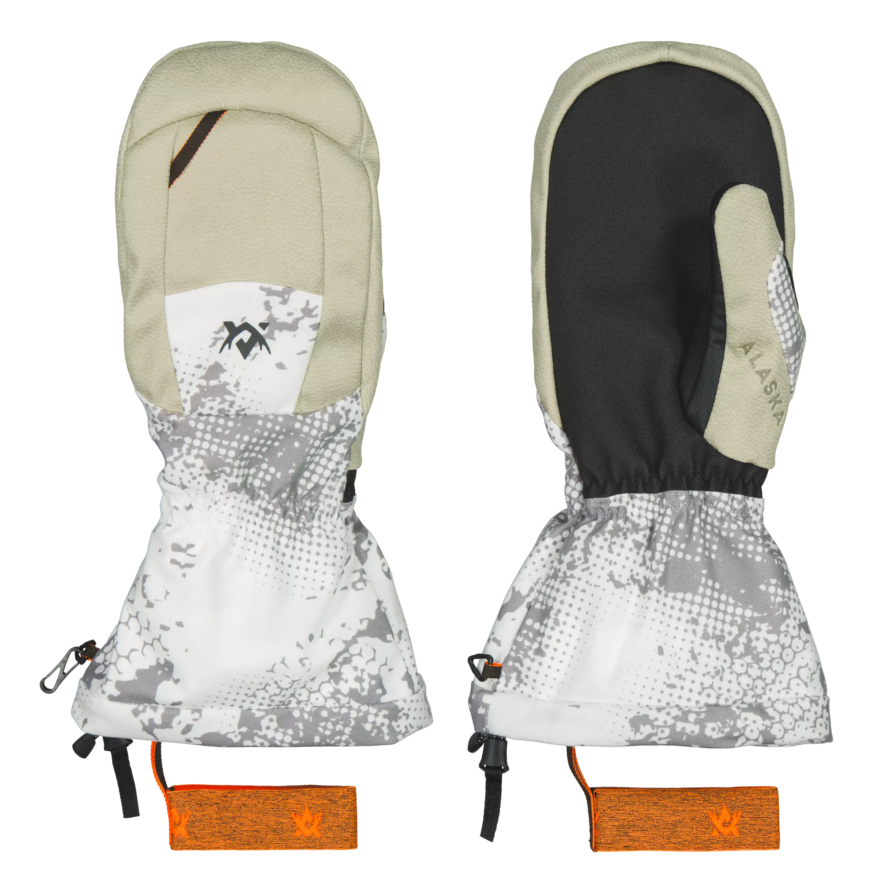 Alaska Tundra Mitten Blur Snow metsästykseen suunniteltu lämmin rukkanen, jossa on vedenpitävä kalvo ja kestävä nahkapinta kämmenessä.