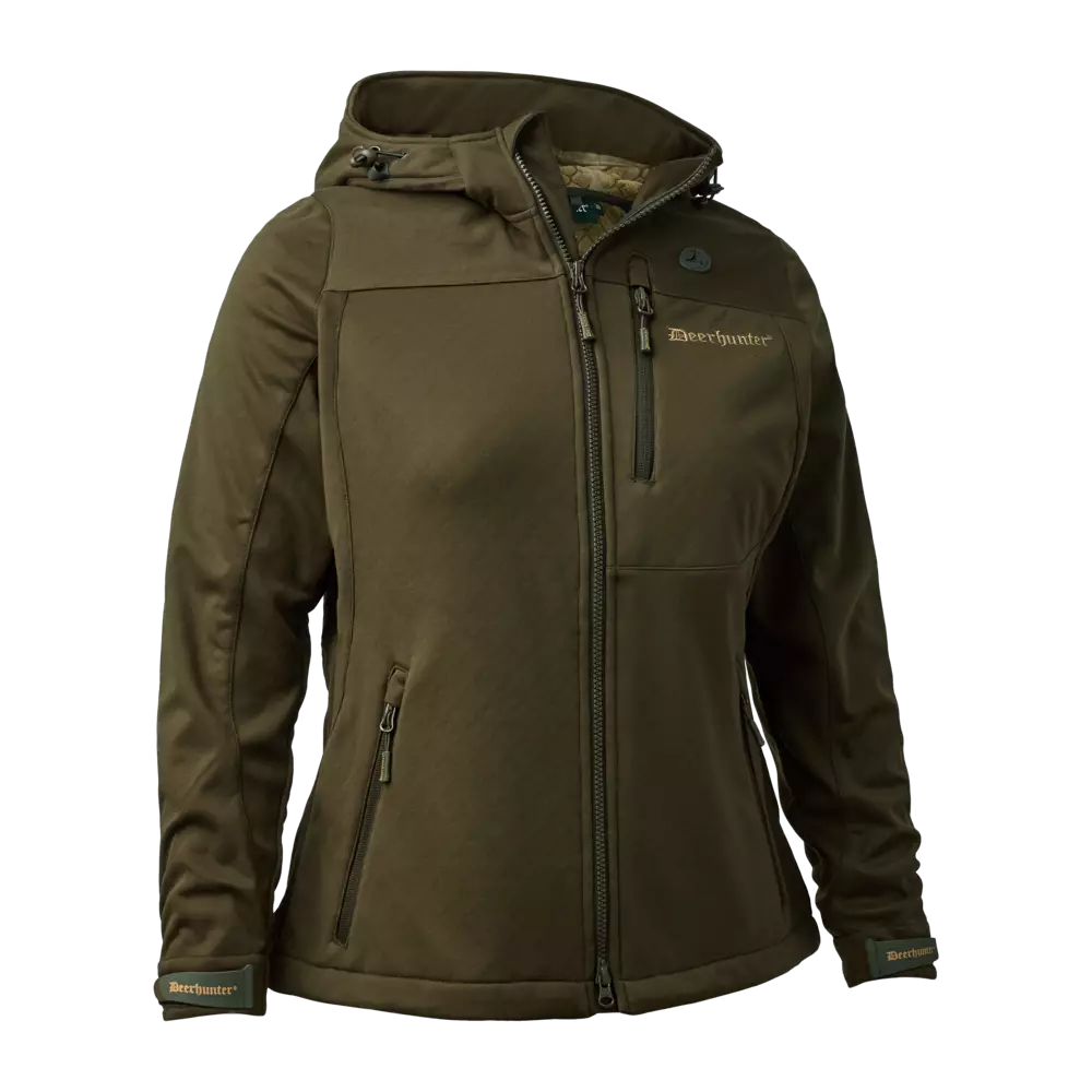 Deerhunter Lady Excape Softshell Jacket Art Green laadukas ja kevyt metsästystakki, joka on suunniteltu ympärivuotiseen käyttöön. Takki on valmistettu 100 % polyesteristä, ja siinä on pehmeä fleece-sisäpuoli. Kylmillä keleillä takkia voi käyttää välikerroksena varsinaisen ulkoilutakin alla.