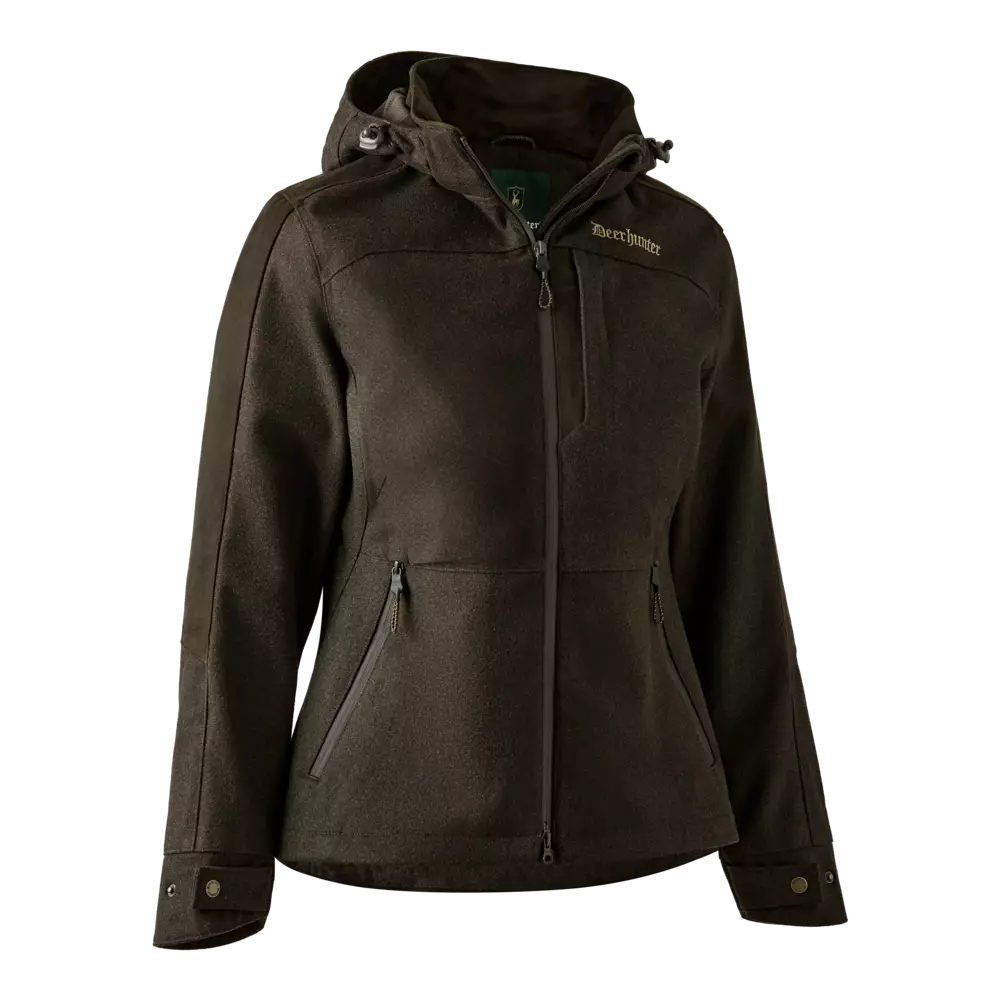 Deerhunter Lady Tatra Active Jacket Loden Wood on monikäyttöinen naisten villasekoitetakki, joka yhdistää modernin estetiikan ja käytännöllisyyden tarjoten tyylikkään, hiljaisen ja lämpimän kolmen vuodenajan takin aktiiviselle ulkoilijalle ja metsästäjälle.