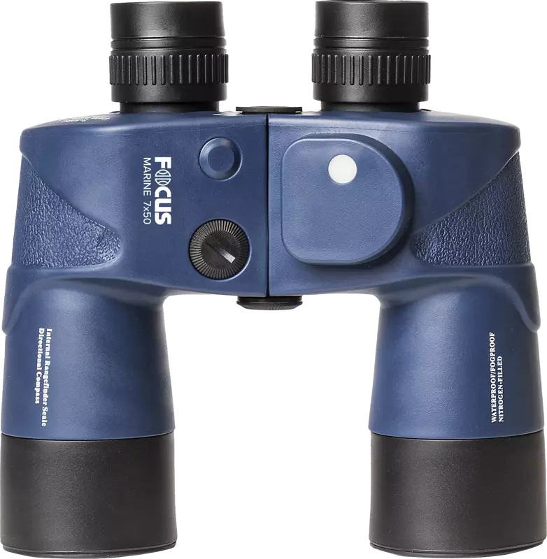Focus Marine 7x50 Compass kiikarit ovat erityisesti merenkulkuun suunnitellut kiikarit, joissa on sisäänrakennettu kompassi ja etäisyysmittausasteikko. Ne ovat täysin vedenpitävät ja kestävät merelliset olosuhteet.