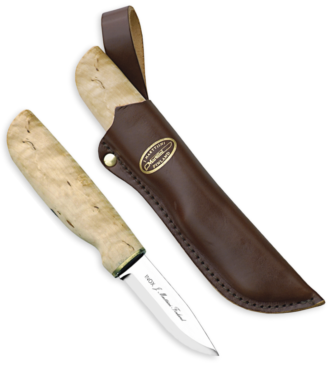 Marttiini Kätevä - Käteväpuukko on ollut vuosikymmenien ajan Marttiinin legendaarisimpia malleja. 1970-luvulla Käteväpuukko löytyikin lähes jokaisesta kotitaloudesta. Se oli varsinainen yleispuukko; sillä kuorittiin perunat ja vuoltiin saunapuiden kiehiset. Marttiini Uusi Kätevän lyhyehkö terä on näppärä tarkkuutta vaativissa tehtävissä. Tämä perinteinen terämalli on nyt yhdistetty kauniiseen visakoivukahvaan. Terämateriaalina on helppohoitoinen ruostumaton kromiteräs.