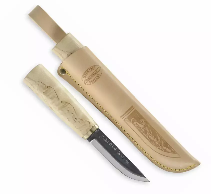 Marttiini Kiehinen on laadukas yleispuukko, jonka terä on valmistettu hiiliteräksestä. Puukko on suunniteltu erityisesti retkeilijöille, eräilijöille ja nikkaroijille. Kaunis visakoivusta valmistettu kahva istuu hyvin käteen ja 9 cm:n terä soveltuu erinomaisesti vuolukäyttöön, ollen tarvittaessa helppo teroittaa alkuperäiseen terävyyteensä. Vaalea nahkatuppi kruunaa puukon.