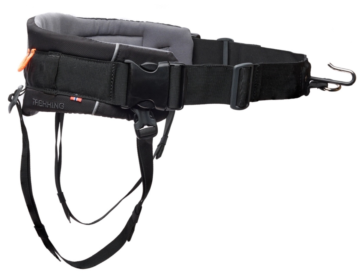 Koiran hihna kiinnitetään edessä olevaan koukkuun. Trekking Belt 2.0 on varustettu jalkaremmeillä, jotka auttavat pitämään vyön paikallaan. Jalkaremmit ovat irrotettavia. Koiran kakkapussit ja muut kevyet esineet voidaan kiinnittää kahteen kiinnityssilmukkaan. Jos tarvitaan lisää säilytystilaa, vetovyöhön voidaan lisätä Belt Bag vyölaukku (ostettava erikseen).