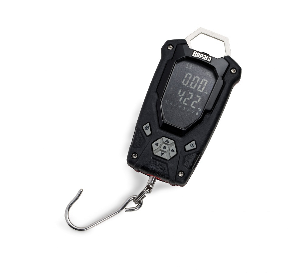 Rapala RCD Digital Scale -kalavaaka. Jämäkkä rakenne, tarkka tulos koko mittausalueella, iso selkeä näyttö ja lämpötilan mittaus ovat hyvän kalavaa’an tunnusmerkkejä - Rapala RCD Digital -vaaka on juuri sellainen. Rapala RCD digitaalivaa'assa on 8 muistipaikkaa, joihin kalojen painot voi tallettaa. Lisäksi vaaka näyttää pienimmän ja suurimman mittaustuloksen sekä yhteenlasketun painon. Muistitoimintoa ja isoa näyttöä hyödyntäen voit ottaa myös parempia ja monipuolisempia valokuvia. Jämäkkä Rapala RCD 25 kg Digital -vaaka mahtuu kämmeneen. Ergonomiaa ja iskunkestävyyttä parantaa Soft Grip -pinnoite.
