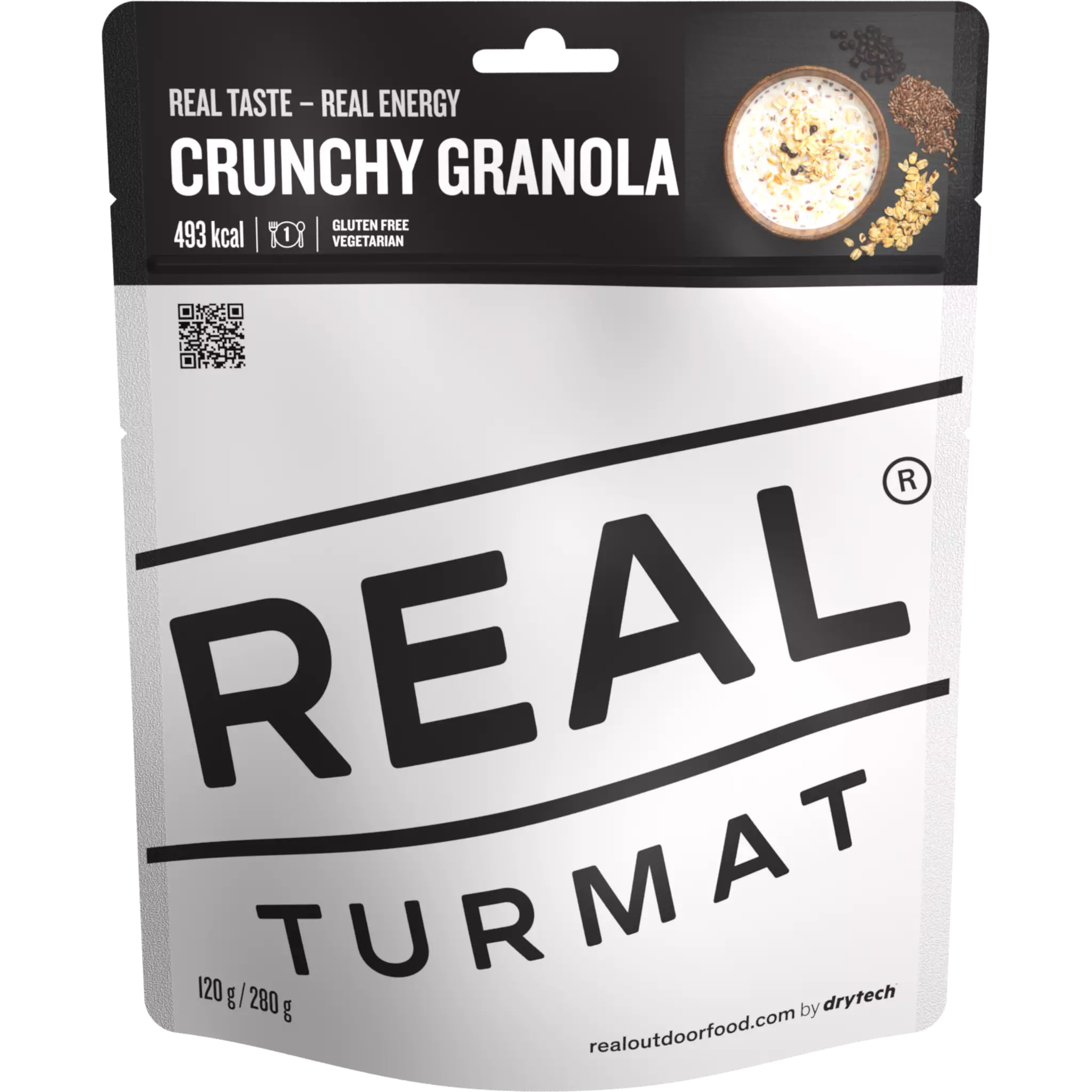 Real Turmat Crunchy Granola on retkiaamiaiseksi sopiva mysliateria, jossa korostuvat helppo valmistus, hyvä säilyvyys ja käytännöllisyys liikkuvaan käyttöön. Tuotteen makumaailma rakentuu ajatukselle crunchy Granola, joten se sopii tilanteisiin, joissa halutaan nopeasti valmistuva mutta silti maukas ateria. Kuivattu rakenne tekee tuotteesta kevyen kuljettaa, ja valmis annos tarjoaa toimivan vaihtoehdon vaelluksille, metsästysreissuille, mökille tai vararuokaan.