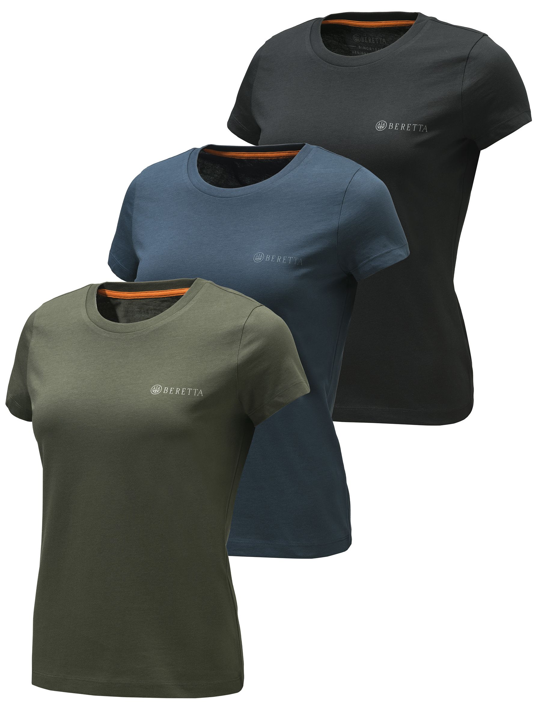 Beretta t-paita setti 3 paitaa/per paketti. 140 g/m2 puuvillaa. Soveltuu vapaa-aikaan, metsästykseen - Oikeastaan mihin vain. Laadukas setti mukavia naisten t-paitoja.